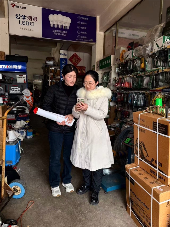 沿着商铺一路前行,粮油店、五金店、小吃店等,每一家门店里,都留下了农行员工的身影。在经营了二十年的老字号面馆,热气腾腾的面香扑面而来。从晨光微露到暮色降临,农行员工的脚步遍布周边的大街小巷,不仅送上了福字、春联,更带着专业的金融服务——手把手教商户排查收款设备风险,讲解电信诈骗防范知识,推介适合的经营类金融产品,倾听商户们的需求与建议。一张张红彤彤的福字,贴在了商户的门窗上,也贴在了大家的心上。一句句暖心的祝福,说在嘴边,也记在心里。
