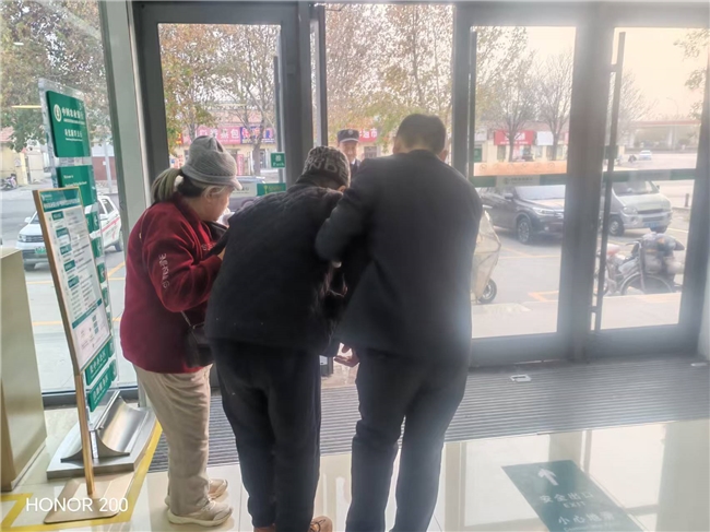 晨光微熹,中国农业银行寿光新兴支行的玻璃门映照着初升的朝阳。突然一辆三轮车停在网点门口,车上坐着一位年近80岁的老人,老人行动极为不便,每步都踏得慎重而艰难。新兴支行大堂主任张永强立刻准备上前,用双手轻柔而坚定地扶住老人的手臂,温声道:“老人家,您请慢慢来。”搀扶着老人慢慢走上台阶。