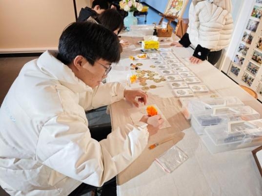 实践的第一站选在关雎文化园。团队成员沉浸于以汤显祖戏曲文化为主题的展区,面对珍贵的明清曲谱刻本、精致的戏曲服饰与道具,他们不仅驻足细观,更结合携带的史料展开现场研讨,梳理昆曲艺术与“临川四梦”之间千丝万缕的文化渊源。更难得的是,成员们亲手体验了昆曲戏服部分纹样的绘制以及道具的制作工艺,与非遗传承人进行面对面交流。“一针一线,一描一画,让我们对‘非遗’的理解从书本概念变成了指尖触感,也更能体会传统艺术传承的匠心与不易。”一位团队成员感慨道。这种沉浸式体验,让年轻学子对戏曲艺术的物质载体与精神内涵有了双重认知。