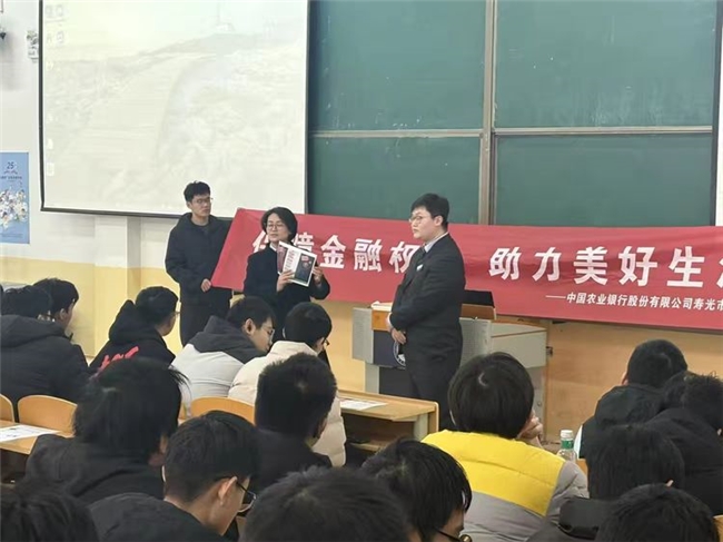 冬日的潍坊科技学院校园里,一间坐满学生的阶梯教室内正开展着一场“金融权益保护课”。近日,寿光农业银行圣城支行组织金融知识宣讲团队走进该校课堂,为在校大学生带来反诈知识宣传。