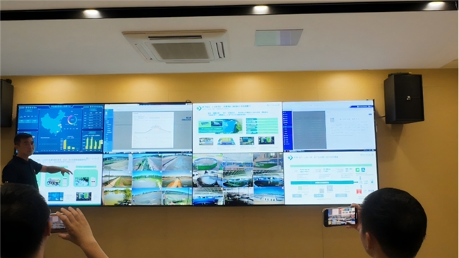 随后,团队走进企业数字化运营中心。在多屏联动的智慧渔业管理平台前,实时数据、养殖画面与分析图表同步展示,构建出一套完整的数字化监控体系。技术人员介绍,该平台融合物联网、大数据与云计算技术,实现对水温、溶氧、pH值等关键参数的实时采集与远程调控。