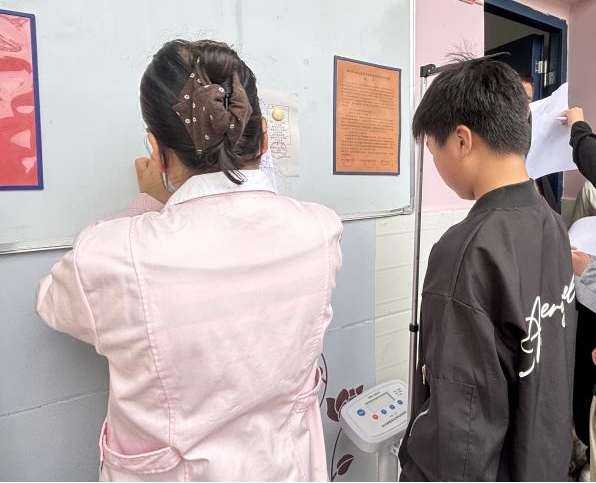 体检过程中,各班班主任全程陪同、细心引导,学生们自觉排队、遵守秩序,依次完成各项检查。医护人员认真细致地为每一位学生进行检测,详细记录体检数据,耐心解答学生提出的健康疑问,对视力不良、口腔问题等情况及时给予科学指导。