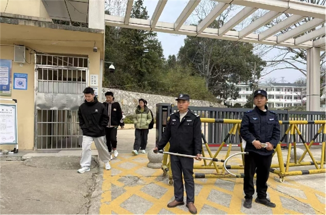 春日暖阳洒在许坊河畔,资溪县高田中学的开学季,多了一抹安心的“警”色。每当上学、放学的铃声响起,校门口总能看到民辅警与学校保安并肩值守的身影,无论是晴光万里还是春雨淅沥,他们始终坚守,为学子筑牢安全防线。