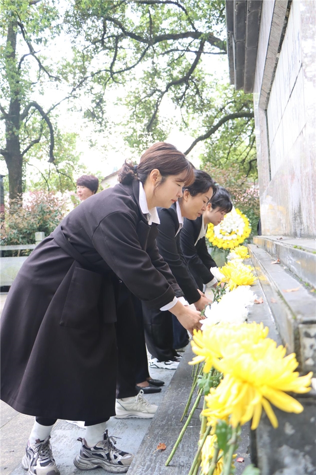 全体人员依次向烈士敬献鲜花,细心擦拭墓碑、整洁祭扫环境。以实际行动表达对革命先烈的追思与敬意,用虔诚的祭扫告慰先烈,让英烈精神在躬身实践中赓续传承。