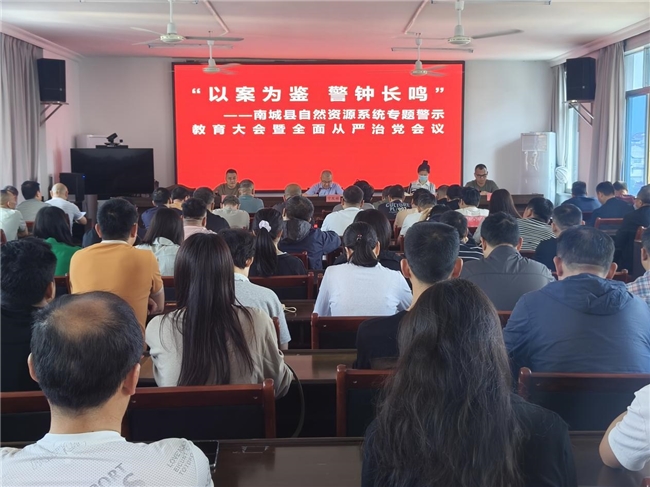 为纵深推进全面从严治党,严明纪律规矩、深化以案为鉴、以案促改,4月19日,南城县自然资源局召开专题警示教育大会暨全面从严治党工作会议。局领导班子成员、机关全体干部职工及下属单位负责人参加会议。