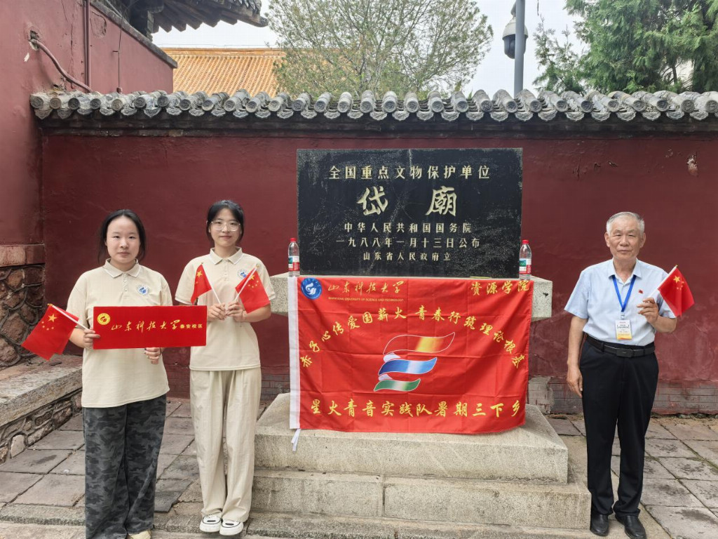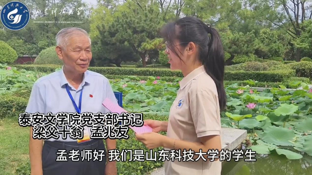 8月27日,山东科技大学暑期“三下乡”社会实践团队——“星火青音”实践队赴世界文化遗产岱庙,以“爱国”为主题,对泰安著名作家、泰安文学院党支部书记孟兆友(梁父十翁)进行了现场专访。在千年古柏、巍峨碑刻的映衬下,围绕“文学如何传递爱国精神”,一场跨越时空的对话徐徐展开。孟兆友先生多年扎根乡土,书写现实,其作品多次荣获国家级奖项,是讲述中国故事、传递家国情怀的重要践行者。