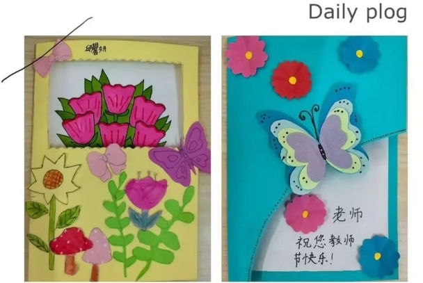 随后,最动人的环节正式开始。同学们纷纷将手中的贺卡轻轻递出。有的贺卡画着精美的花朵,有的写满娟秀的祝福,还有的贴着可爱的贴纸。当老师接过一张张承载着心意的贺卡,指尖触到的不仅是卡纸的温度,更是孩子们最纯粹的感恩。
