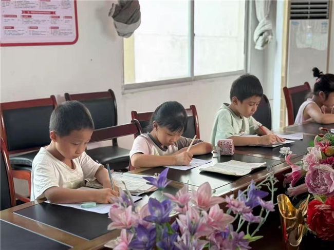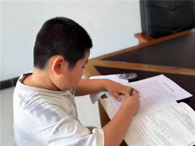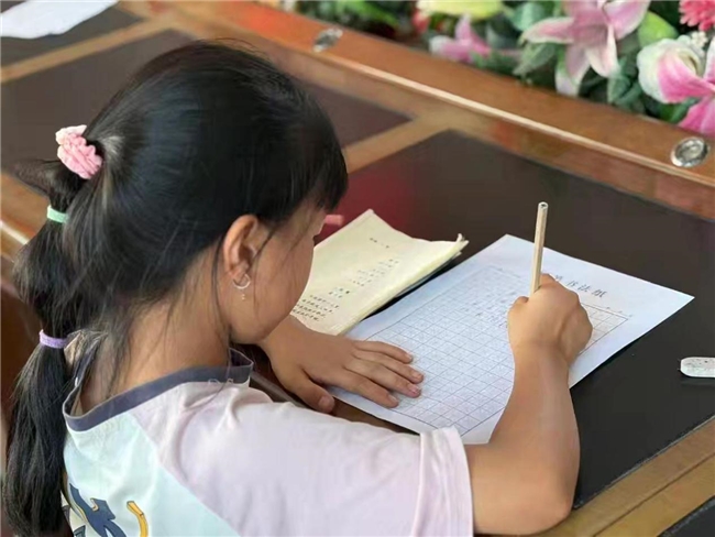 活动中设置书写环节,学生们在桌前专注练习规范字,展现出对语言文字规范使用的认真态度。