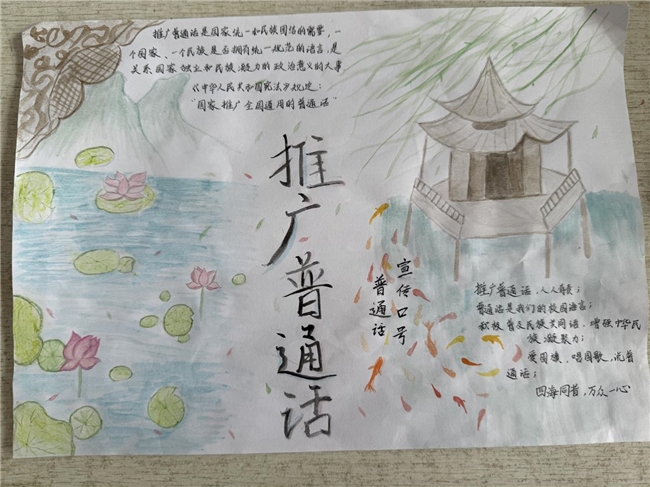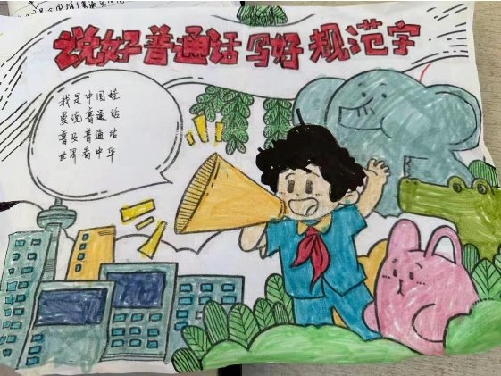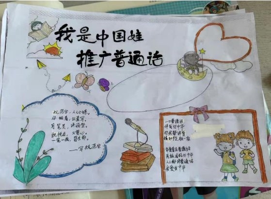 学生创作推广普通话主题手抄报,通过图文结合形式传播规范用语知识,展现活动学习成果。