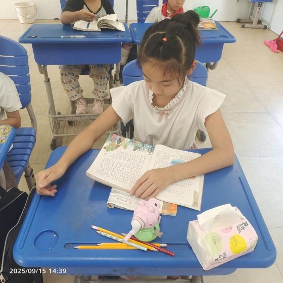 一、二年级学生以班级为单位,开展“普通话诵经典”活动。孩子们身着整齐服装,用稚嫩却标准的普通话朗诵《三字经》《弟子规》等经典篇目,声音洪亮、情感饱满,在朗朗书声中感受语言之美,锻炼了普通话表达能力。