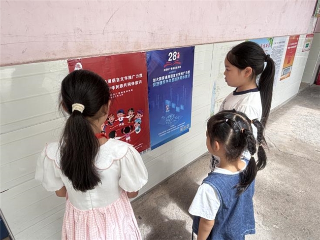 宣传栏上,“加大国家通用语言文字推广力度,促进铸牢中华民族共同体意识”的标语也格外醒目。推普不只是一句口号,更是同学们用清晰表达打破隔阂、用标准语言传递友善的行动,让校园成为语言文明的温暖摇篮。