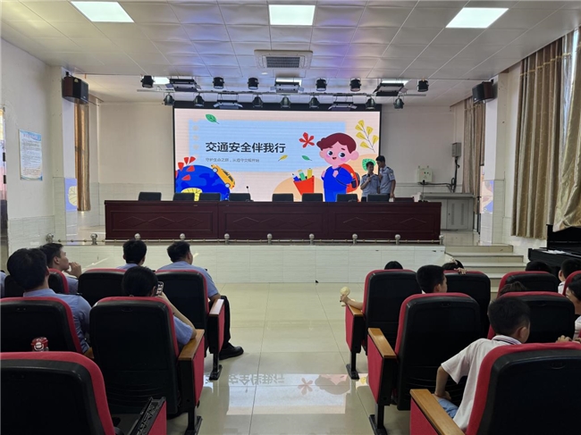 活动中,法治副校长丁清豪警官结合学生的年龄特点和心理特征,用鲜活的案例、通俗的语言,围绕交通安全、防诈骗、防欺凌、网络安全等方面,为同学们上了一堂生动的法治课。他详细讲解了相关法律法规知识,引导同学们在日常生活中要知法、懂法、守法、用法,学会运用法律武器维护自身的合法权益。