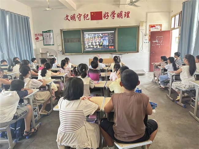 9月3日上午,南城县里塔镇中心小学全体师生齐聚教室,集体观看纪念中国人民抗日战争暨世界反法西斯战争胜利80周年阅兵式。在这个庄严而光荣的日子里,大家都以饱满的热情参与其中,共同铭记历史,致敬英雄。