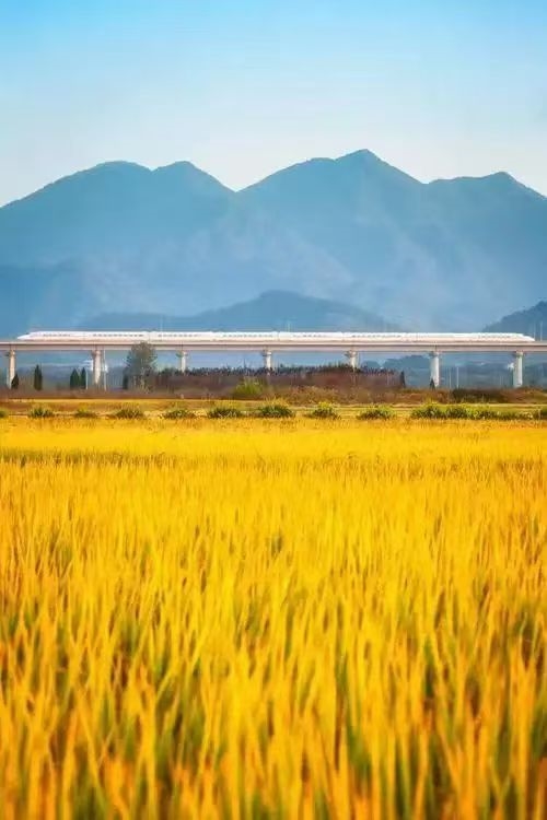 我家住在南城县火车站旁边,家里离车站仅有不到十分钟的步行路程,每当从自家阳台上看到飞驰而过的动车,总有一种满满的幸福感洋溢在心间,不仅增添了对家乡的热爱,也为新中国成立76周年而感到无比的自豪和骄傲!饮水思源,感恩伟大的祖国!