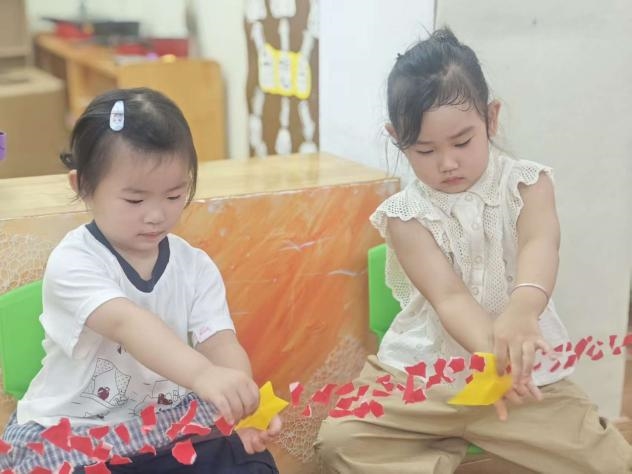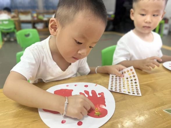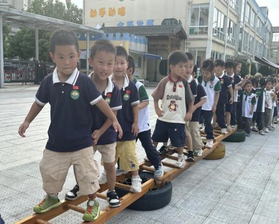 活动期间,各年级组设计了富有特色的体验项目。大班幼儿以“红歌传情”、“长卷绘梦”、“巧猜灯谜”等游园游戏感受家国同庆的喜悦;中班幼儿以“重走长征路”为主题,通过“巧渡金沙江”、“爬雪山”等趣味游戏感悟勇气与坚持;小班宝贝则用“爱国手环”、“指印山河”等手工活动表达对祖国的初次感知与祝福。