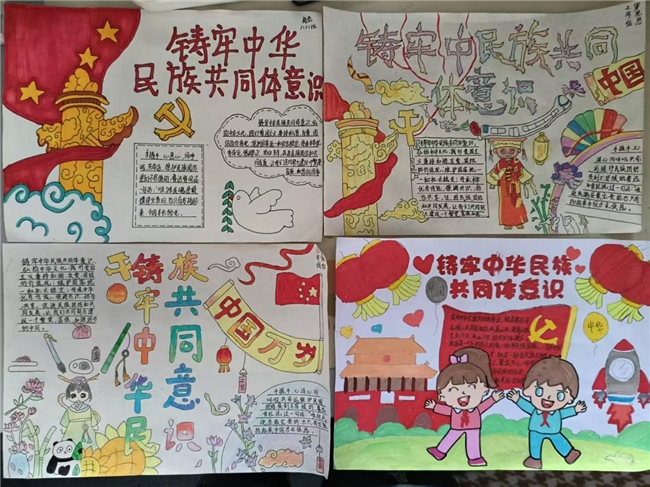 各班班主任开展以“同心石榴籽 共绘中国梦”为主题的铸牢中华民族共同体意识教育班会活动以及作品征集评选活动,通过手抄报等艺术作品形式,感受中华民族精神和文化魅力,在博大精深的中华优秀传统文化中汲取智慧、开拓创新,共享文化繁荣,为铸牢中华民族共同体意识培根铸魂。
