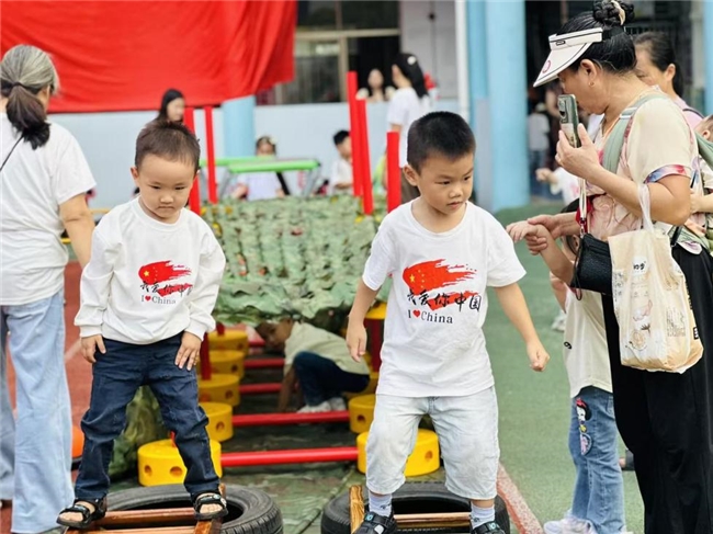 在“红色征程·重走长征路”主题区,孩子们化身为勇敢的小红军,在家长的陪伴下挑战“飞夺泸定桥”、“强渡大渡河”、“穿越火线”等模拟关卡。他们爬行、奔跑、协作,在寓教于乐的体验中,亲身感受革命先辈的艰辛与无畏,爱国主义的种子在幼小的心灵中悄然生根。