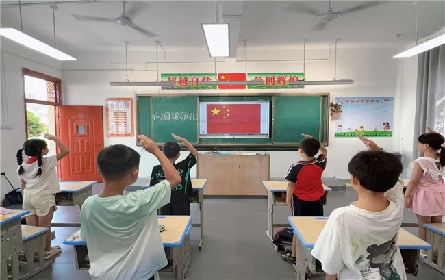 全体学生整齐站立,面向国旗庄严敬礼,在肃穆的氛围中,强化对国旗的尊崇,让爱国主义精神在集体仪式中浸润心灵,凝聚班级爱国向心力。