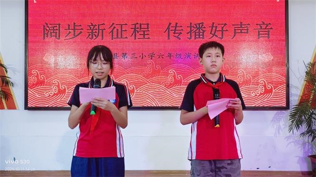 此次演讲比赛,既是资溪县第三小学落实“立德树人”根本任务的生动实践,也为学生搭建了展现自我、抒发理想的平台。通过“讲”与“听”的互动,让“新征程”的时代内涵扎根童心,让“好声音”的正能量浸润成长,进一步激励六年级学子以更昂扬的姿态迈向未来。(余晓青)