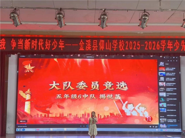 为了增强少先队员的参与意识、民主意识、竞争意识,选出新的少先队员担任大队委职务,10月10日,金溪县仰山学校举行2025-2026学年大队委换届竞选活动。
