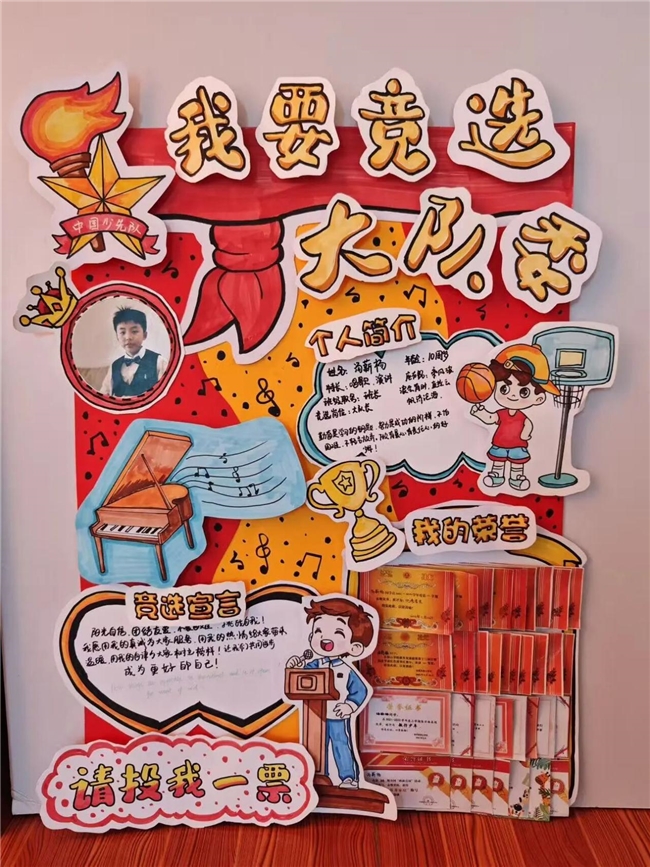 自大队委竞选通知发布以来,四至五年级各中队迅速响应,队员们踊跃报名,提交填写申请表,并精心设计宣传海报,充分展示个人特长与风采。经过中队民主投票推选、辅导员综合评定,最终33名品学兼优、责任心强的队员脱颖而出,成为本次竞选的候选人。