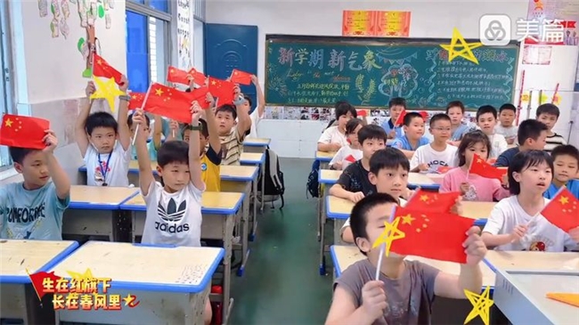 在声浪翻涌的教室,同学们以赤诚为底色,向祖国致敬。五星出东方,照亮山河与人心;红旗耀中国,映红清晨与归航的帆。此刻,让他们把热爱化作声音,把祝福写在目光里,与时代同频,与祖国同行。愿五星永远指引,红旗永远飘扬。