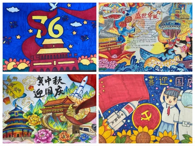 美术教室里,画笔与颜料成为表达热爱的工具。有的同学以天安门为背景,画出飘扬的国旗与绽放的鲜花;有的同学描绘出高铁飞驰在绿水青山间的场景,寓意祖国的飞速发展。每一幅画,都是一颗童心对祖国最纯真的祝福。
