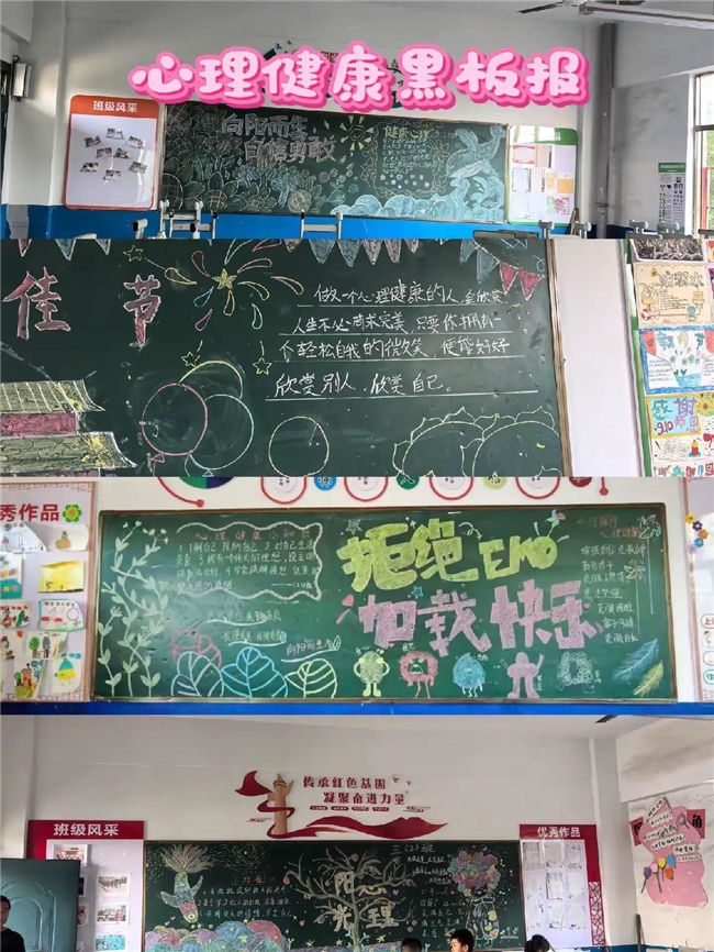 走进各个班级,一幅幅精心设计的“心理健康”主题黑板报映入眼帘。这些由老师和同学们共同创作的成果,不仅色彩斑斓,更充满了智慧的闪光。