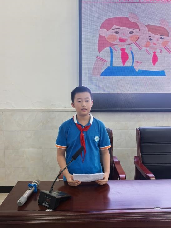 少先队员代表姜宇辰以《强国路上,我们都是追梦人》为题献词,他号召全体队员以少代为契机,主动参与学校建设、积极践行先锋精神,在少先队组织中书写“好少年”的成长答卷。