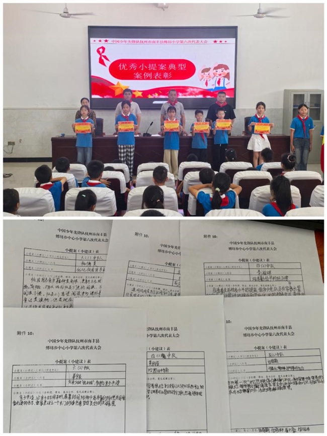 作为学校的“小主人”,队员们围绕校园文化、成长需求等方面提交了诸多提案。经评选,一批“金点子”获评优秀提案,校领导为获奖队员颁奖。从“优化图书角管理”到“培养勤俭节约好习惯”,每一份提案都是队员们对“美好校园”的用心规划,彰显了他们的民主意识与责任担当。