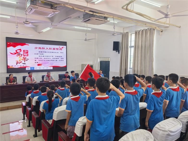 在大队长宁子萱的带领下,新队员庄严宣誓:“我是中国少年先锋队队员。我在队旗下宣誓:我热爱中国共产党,热爱祖国,热爱人民,好好学习,好好锻炼,准备着:为共产主义事业贡献力量!时刻准备着!” 稚嫩的誓言里,满是他们对成长、对责任的懵懂却坚定的承诺,这是属于少年先锋队的精神传承,也是他们迈向“强国复兴”征程的小小起点。