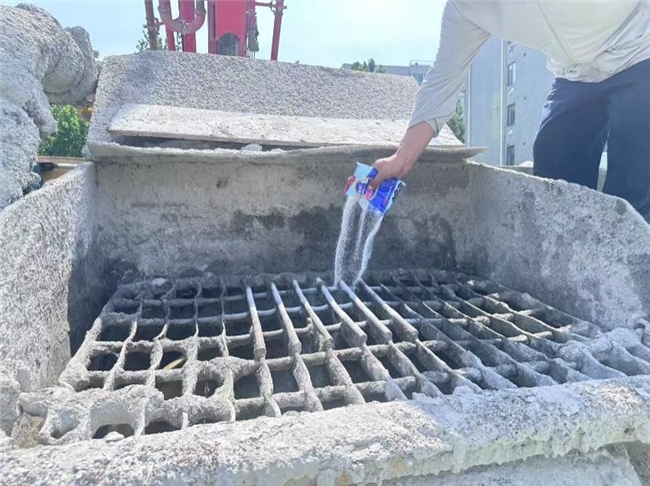 高效润泵剂技术:在混凝土浇筑中,项目全面采用多功能外养护型高效润泵剂,替代了传统的润泵砂浆。此举从根本上大幅减少了水泥、沙子的消耗,并显著降低了碳排放,展现了优异的资源优化效率。该材料具备速溶、高渗透性的特点,能快速形成保护层,有效润滑泵管,避免堵管风险,同时兼具防水防尘功能,简化了设备维护流程,实现了经济效益与环保效益的双赢。