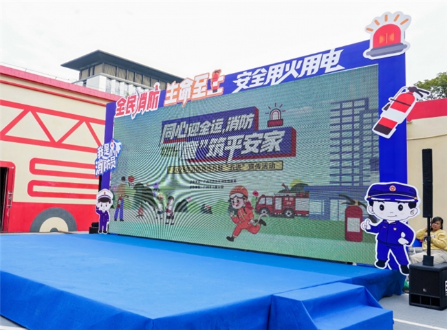 “当遇到火灾时,要迅速往哪里逃生?”“电动自行车电池着火怎么处理最有效?”在舞台互动区,小朋友们积极提问,宣传员一一耐心解答。现场还设有家庭灭火技能演示、灭火救援器材展示、电池爆燃体验等互动环节,吸引市民纷纷驻足参与。
