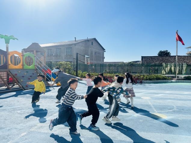 户外活动时,传统游戏成为重阳节的一抹亮色。斗鸡、老鹰抓小鸡、跳房子、抓石子等游戏轮番上演,孩子们在欢声笑语中感受传统游戏的魅力,用满场的活力为长辈们增添节日的喜气。
