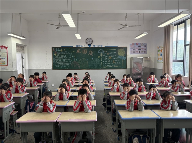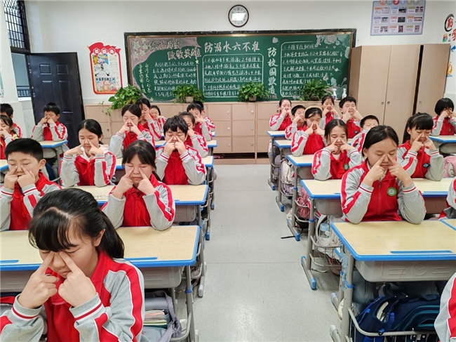 眼保健操环节:同学们认真专注,穴位准确,动作规范,充分展现了保护视力、爱护眼睛的良好习惯。