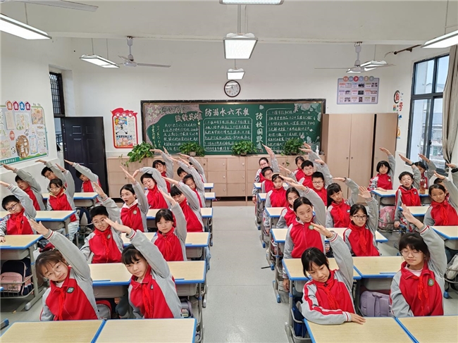 室内操环节:在有限的空间里,同学们动作整齐划一,活力四射,每一个动作都充满了力量与美感,展现了新时代少年的阳光风采。