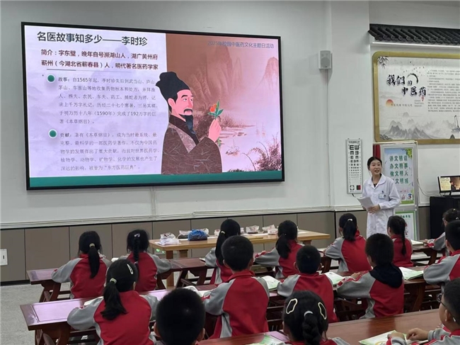 活动伊始,经验丰富的刘婧医生走上讲台,用生动有趣的语言为同学们讲述了中国古代最著名的中医药先驱——华佗、李时珍、张仲景、孙思邈的故事。从华佗发明麻沸散,开创外科手术先河,到李时珍踏遍千山万水,编撰《本草纲目》这一中医药巨著;从张仲景著《伤寒杂病论》,奠定中医临床学基础,到孙思邈大医精诚,成为医德典范。刘医生的讲述绘声绘色,同学们听得津津有味,仿佛穿越时空,与这些伟大的先驱们进行了一场心灵的对话。在故事中,同学们深刻感受到了中医药文化的源远流长和博大精深,也体会到了古代医者们救死扶伤、无私奉献的高尚精神。