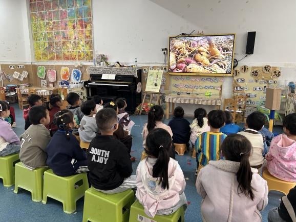 在活动开始前,通过生动有趣的图片、视频,向小朋友们了解了红薯的生长过程、品种以及营养价值。
