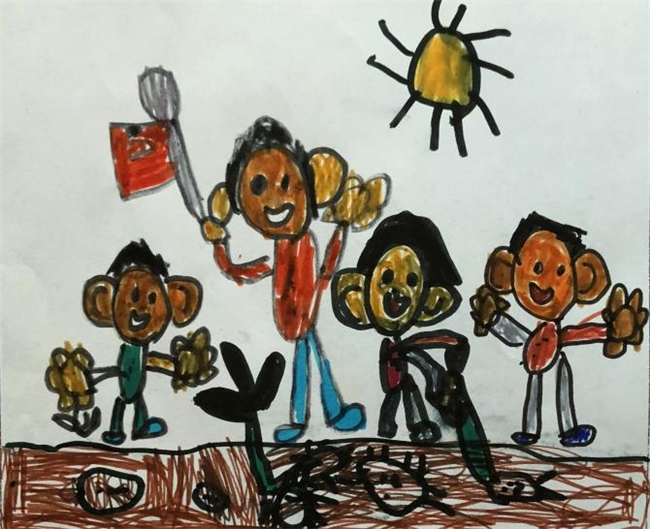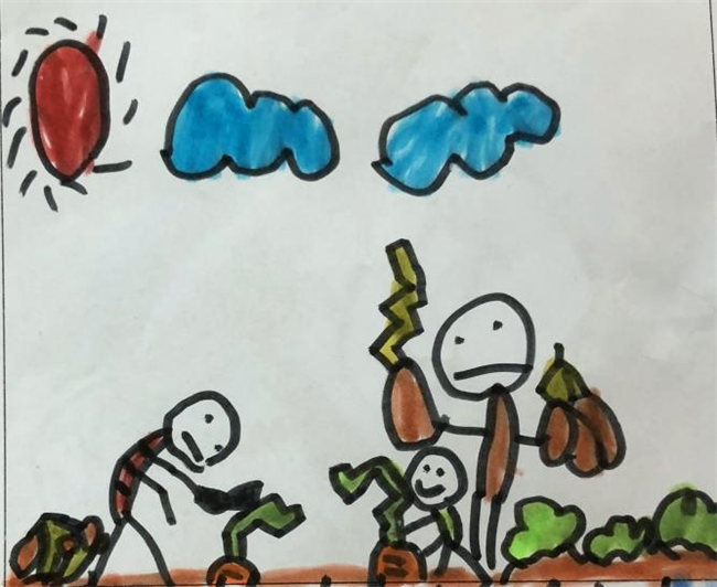回到教室,孩子们对挖红薯的活动依然意犹未尽。大家立刻翻开自己的游戏故事本,拿起画笔开始记录挖红薯的快乐。有的孩子画出自己蹲在地里挖红薯的模样;有的画出和小伙伴一起举着“地瓜大王”欢呼的场景;还有的特意把小铲子画得格外清晰,像是在炫耀自己的“挖薯神器”。一页页稚嫩的画作,记录下的不仅是挖红薯的过程,更是孩子们在秋天里收获的快乐与成长。