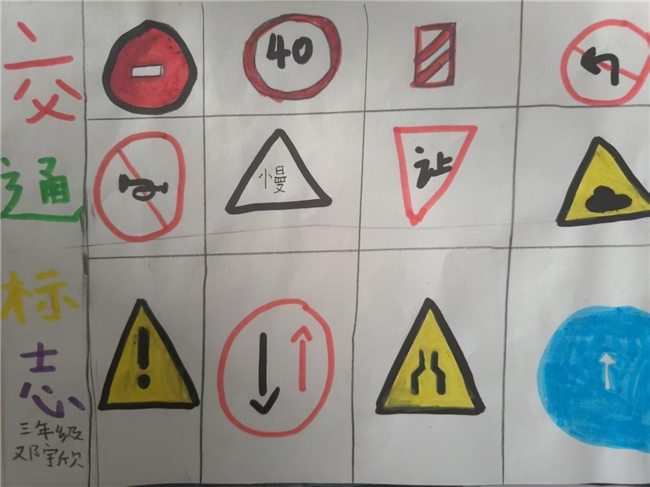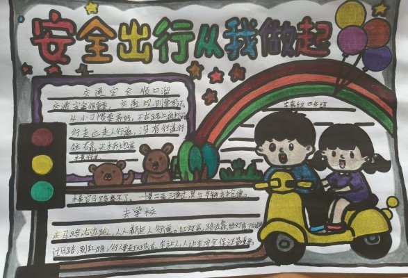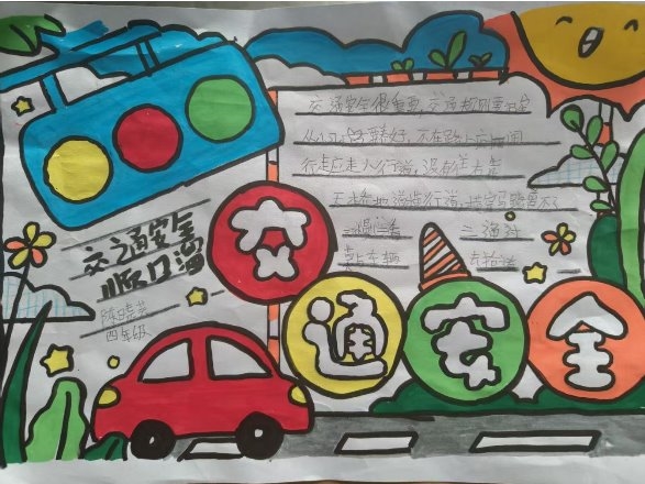 2.手抄报:组织1-3年级学生绘画交通安全标志,4-6年级学生绘画有关交通安全的手抄报,加强了同学们对遵守交通安全重要性的理解。