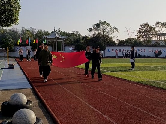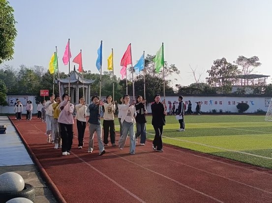 运动会的序幕在激昂的旋律中开启。庄严的护旗队率先步入会场,他们步伐坚定,神情肃穆,护卫着鲜艳的旗帜。紧随其后的是彩旗队,五彩的旗帜在阳光下迎风招展,象征着学子们绚烂的青春梦想。随后,七、八、九年级各班级方阵依次经过主席台。同学们口号响亮,步伐整齐,充分展现了合市学子昂扬向上的精神风貌,赢得了看台上师生们的阵阵掌声。