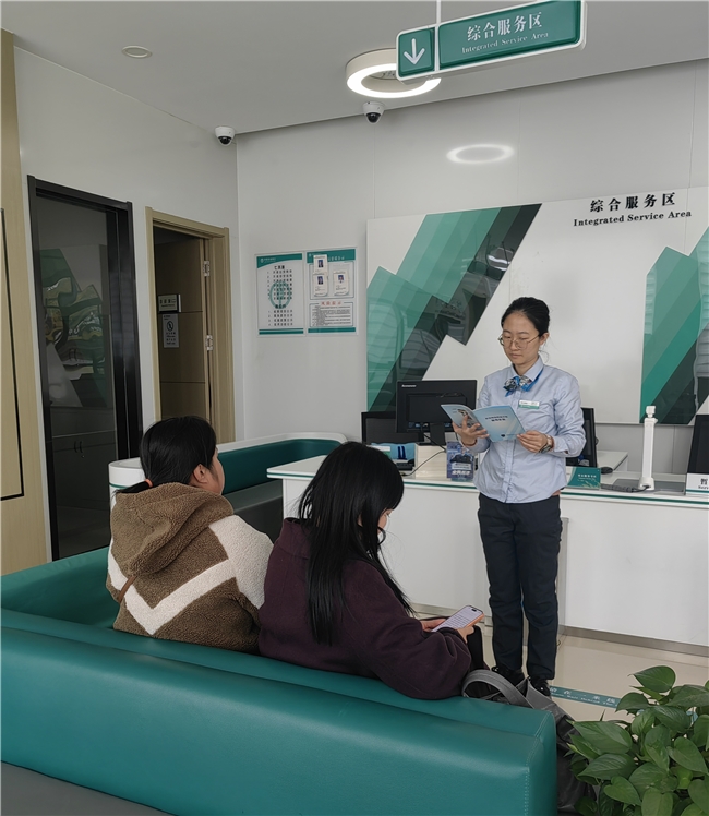 厅堂内设置了反诈宣传专区,张贴了醒目的反诈海报,摆放了图文并茂的宣传折页,内容涵盖当前高发的冒充客服诈骗、投资理财诈骗、刷单返利诈骗、AI冒充熟人诈骗等常见套路。
