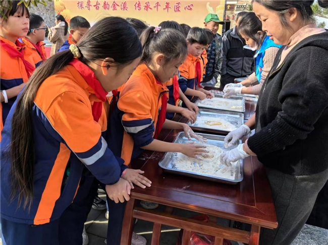 为深化青少年对家乡非物质文化遗产的认知与情感,激发守护与传承文化的热情,坚定文化自信,11月18日下午,金溪县历史文化街区开展了一场别开生面的非物质文化遗产主题活动。本次活动由金溪县文广旅局主办,金溪县文化馆、浒湾雕版印刷博物馆承办,金溪县秀谷二小与陆九渊演艺公司共同协办。金溪县秀谷二小学生走出课堂,走进历史文化街区,亲身感受家乡非遗的深厚底蕴与文化魅力。