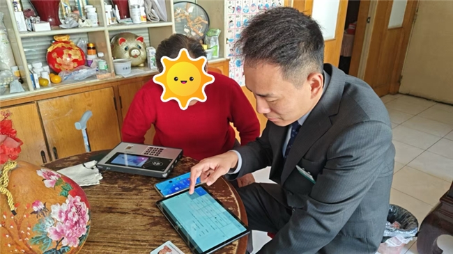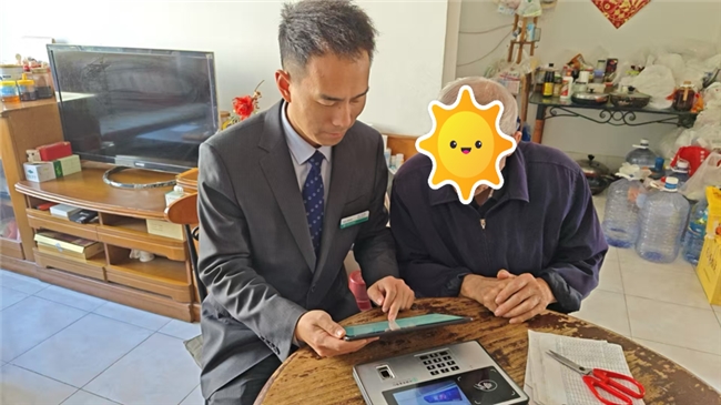 老人的家人到网点求助,称老人满80岁需办理银行卡领取补助金,但因身体原因无法到网点办理业务。仓圣支行迅速启动“上门服务”机制,工作人员携带移动智能终端,按照约定时间抵达客户家中,在餐桌旁,他们一边耐心讲解业务流程,一边协助老人完成信息确认、电子签名等操作,全程细致又高效,遇到老人听不懂的术语,还会用通俗的语言反复解释,让老人既清楚流程,又安心放心。