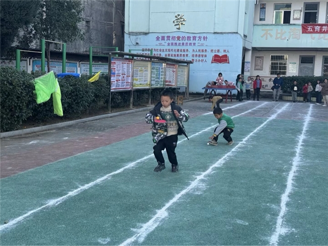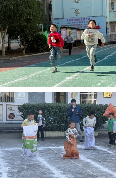 本次运动会既有传统田径项目,也有创意趣味比赛:短跑赛道上,小选手们像离弦的箭,脚步带风冲向终点,围观同学的加油声此起彼伏;趣味项目区成了欢乐的海洋:孩子们钻进化肥袋里“袋鼠跳”,笨拙又可爱的动作惹得全场大笑;还有“托乒乓球跑”,小选手们屏气凝神,小心翼翼地护送小球,紧张又有趣。