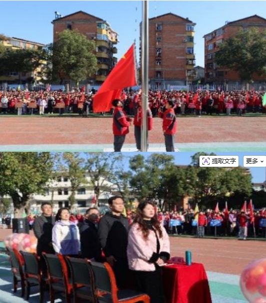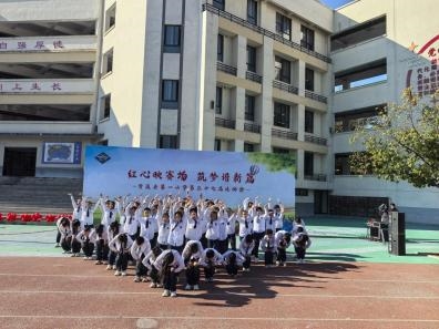 伴随着雄壮的国歌声,鲜艳的五星红旗冉冉升起,迎风飘扬。全体教师肃立行注目礼、少先队员行队礼,校园内回荡着激昂的旋律,爱国情怀在每个人心中激荡。