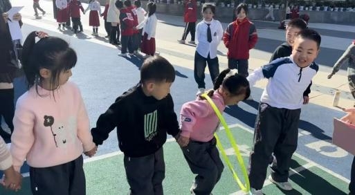接力赛场,小小的接力棒在运动员手中稳稳传递;拔河比赛的绳子两端,运动员们紧握绳索,脚抵着脚、肩并着肩;穿针引线的队伍里,一、二年级的小朋友们手拉手齐心协力,不松手不慌乱。