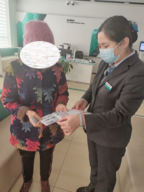 为帮助群众更好识别新版人民币、守护资金安全,近日,农行寿光孙家集支行开展了新版人民币防伪特征宣传活动。工作人员针对老年客户等群体,通过“一对一”指导的方式,结合宣传手册逐一演示光彩光变面额数字、动感光变镂空开窗安全线、胶印对印图案等核心防伪标识的识别方法,用通俗易懂的语言拆解专业防伪知识,让客户直观掌握辨别技巧。