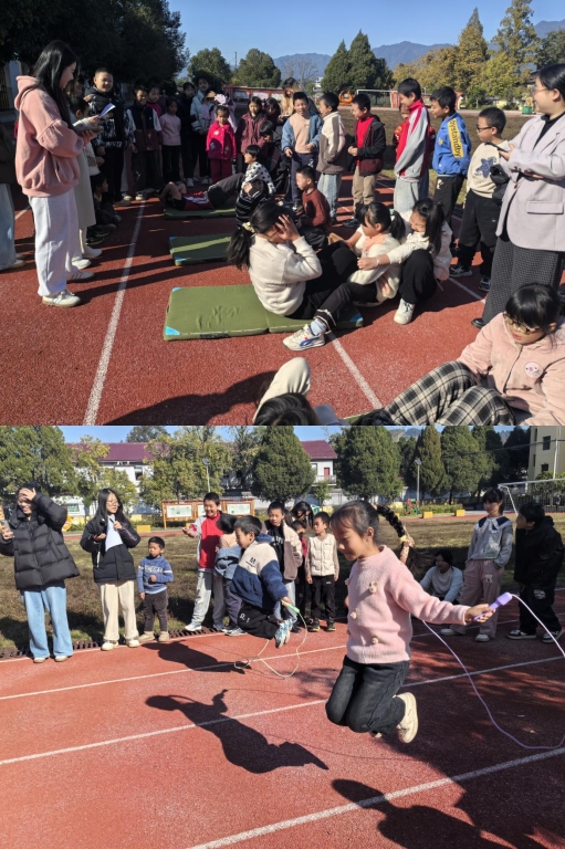 本次运动会除了一分钟跳绳、一分钟仰卧起坐、立定跳远、100米跑等基础项目,还额外增设“袋鼠跳”“两人夹球跑”等趣味项目,按低、中、高三个年级段及男女组别分组竞技。赛场上,小运动员们奋勇争先,跳绳翻飞、冲刺奔跑,配合默契,充分展现少年活力;各工作组各司其职、协同配合,保障赛事安全有序。
