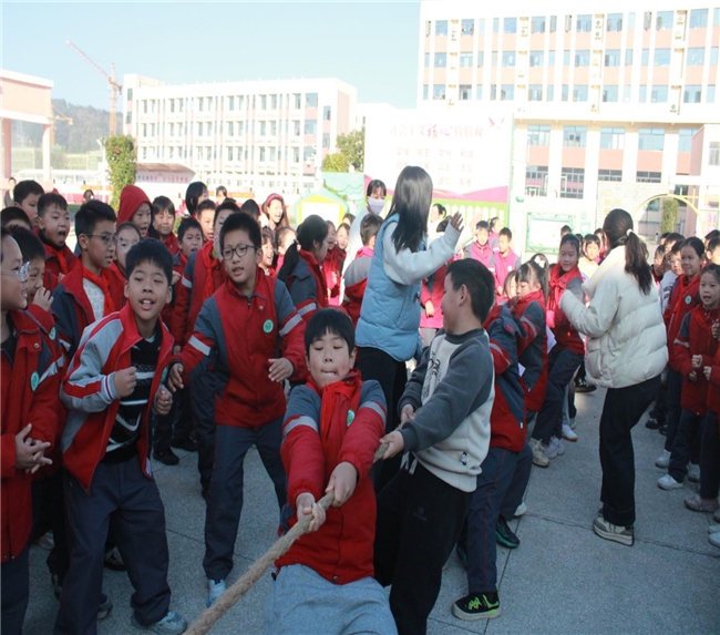 竞赛场上,精彩轮番上演。跑步赛场上,运动员像敏捷的小鹿,听到发令枪响便全力冲刺;跳远垫前,孩子们像小飞鸟般腾空跃起,见证着一次次小小的突破;跳绳比赛中,小选手们手脚协调、节奏明快,展现着扎实的运动功底;掷垒球赛场,孩子们在空中旋转划出一道完美的抛物线;拔河比赛中,孩子们拧成一股绳,展现着力量与技巧的精彩对决……整个校园回荡着孩子们如潮的加油声和欢呼声。